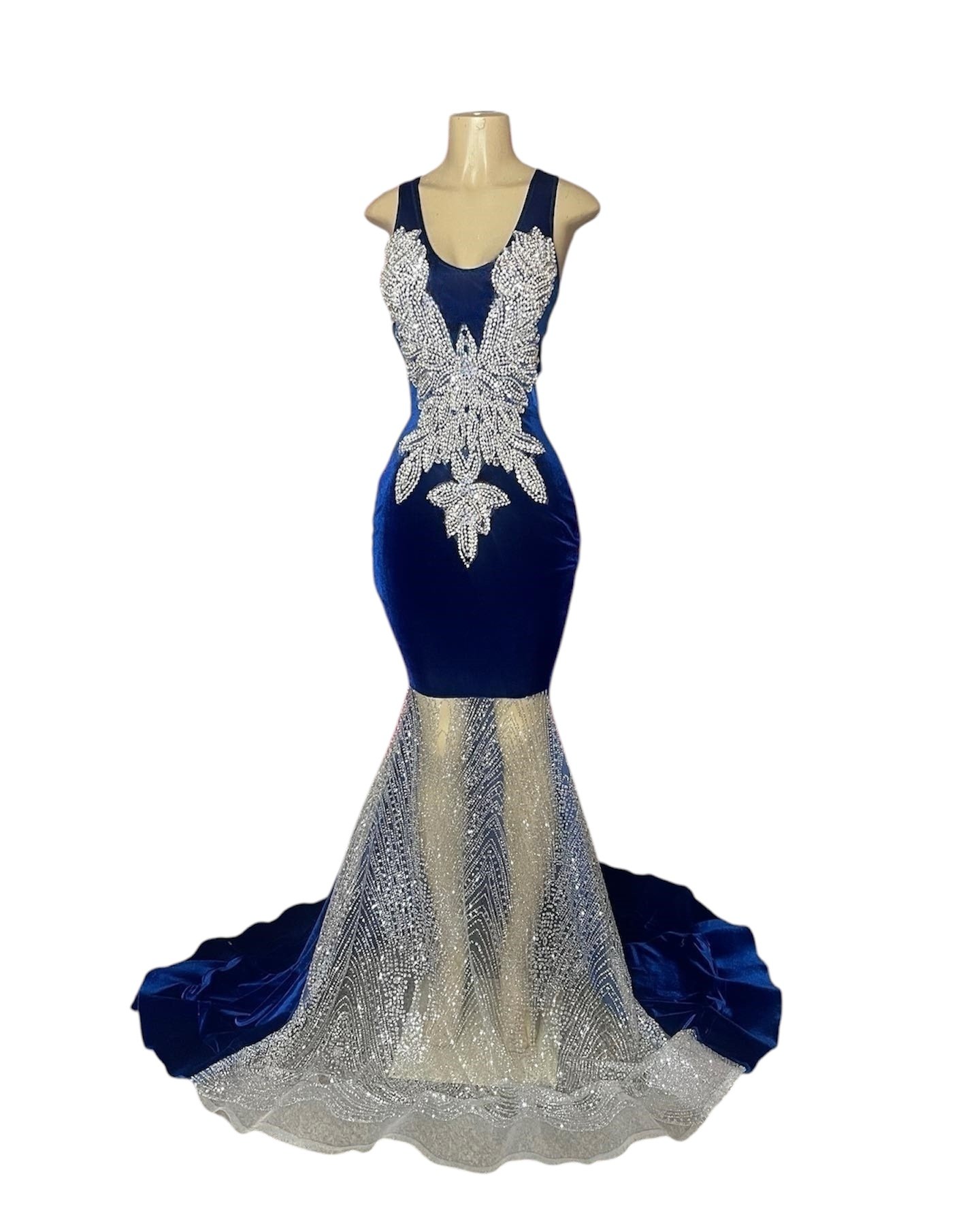 Lydia Simone Prom Pre-Made Navy Velvet Prom Dress